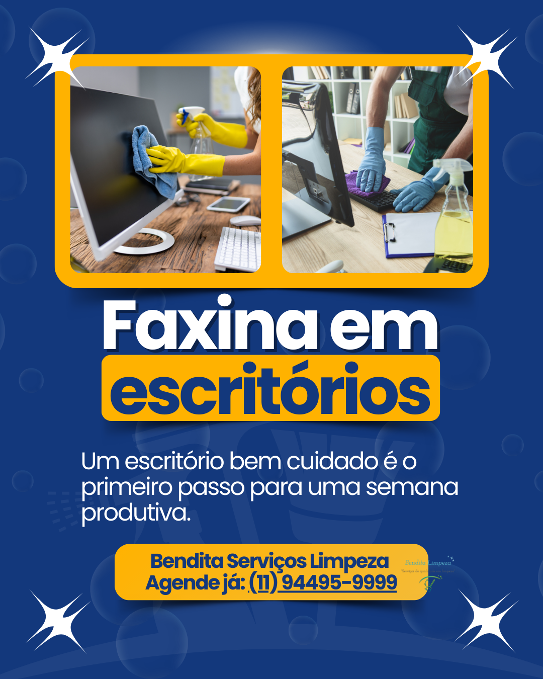 A Bendita Limpeza Serviços Ltda é especializada em limpeza profissional de escritórios, empresas e ambientes corporativos em São Paulo. Atuamos com limpeza comercial, limpeza empresarial recorrente e limpeza predial, garantindo ambientes organizados, higienizados e mais produtivos. Atendemos empresas na Zona Sul de São Paulo, incluindo Itaim Bibi, Vila Olímpia, Moema, Campo Belo, Santo Amaro, Morumbi, Vila Mariana, Saúde, Ipiranga, Cambuci e Jabaquara. Também atuamos na Região Central, atendendo Consolação, Bela Vista, República, Liberdade, Barra Funda, Brás, Bom Retiro e Cerqueira César, além da Zona Oeste, com serviços em Pinheiros, Lapa, Vila Madalena, Alto de Pinheiros e Vila Leopoldina. Ligue (11) 94495-9999